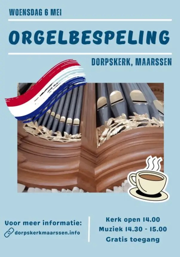Inloopconcert in Maarssen. Meer info, zie: https://dorpskerkmaarssen.info/orgelbespeling-dorpskerk/